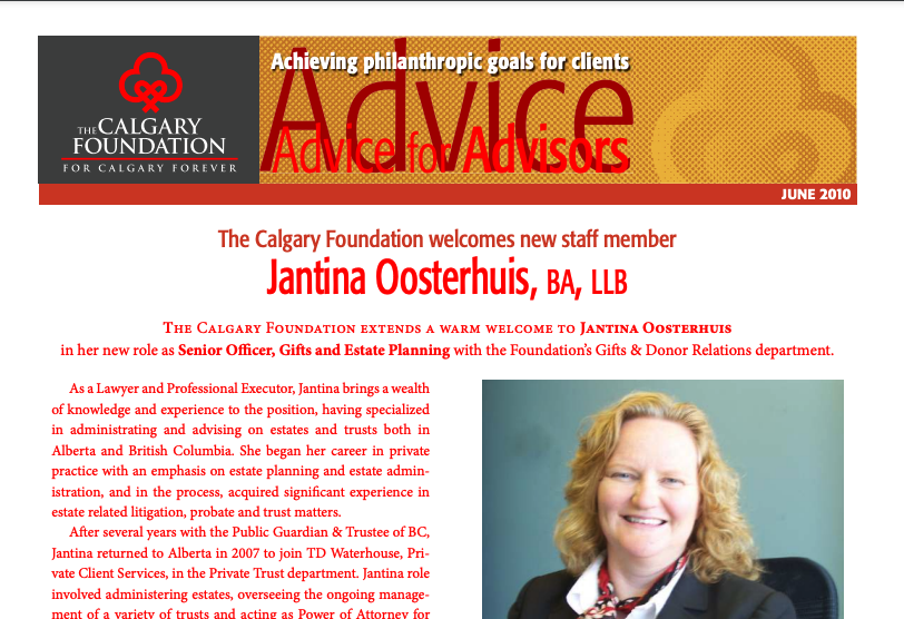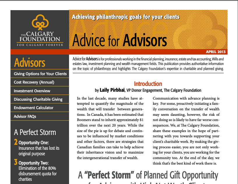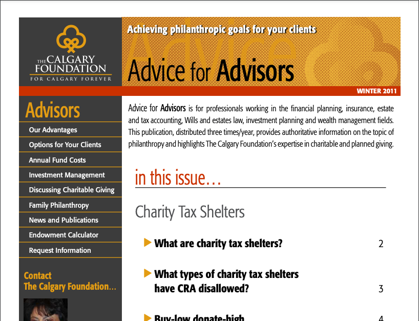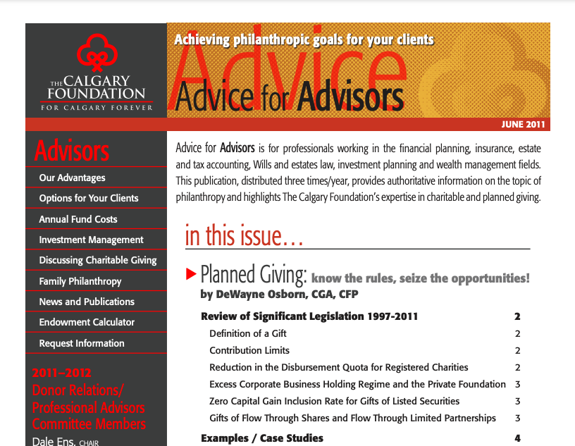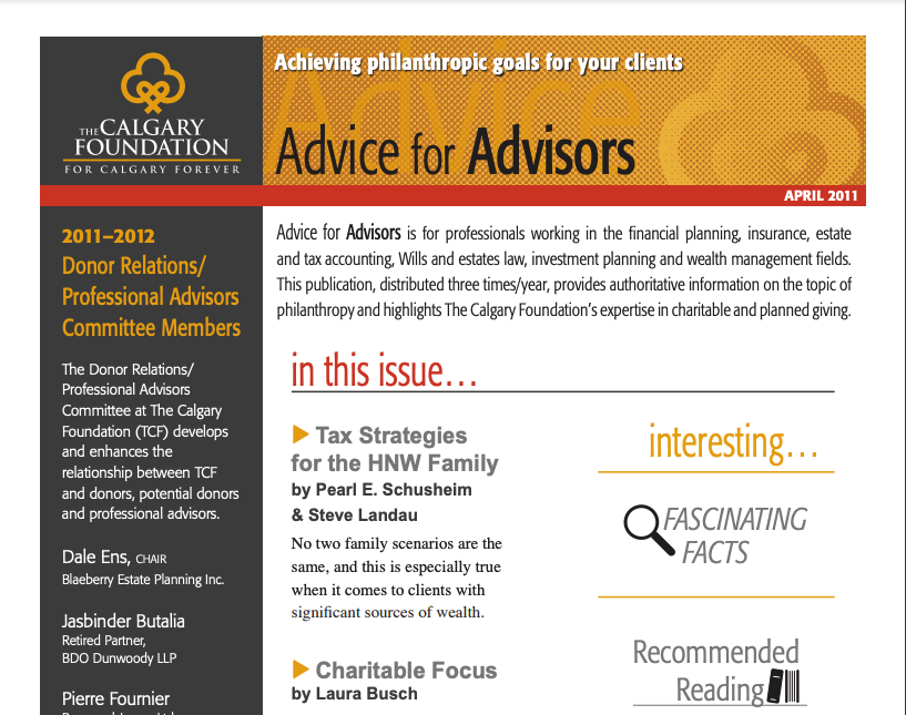 The Advice to Advisors newsletter provides timely information on philanthropy and charitable giving.